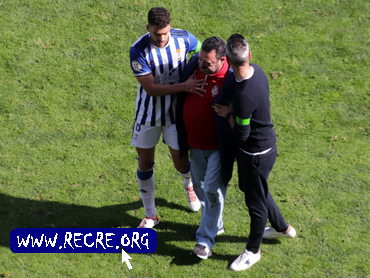 El médico del Recreativo, Rodolfo Ortiz, sufre una posible rotura de fibras en la parte posterior de la pierna durante el partido ante la U.D. Melilla.